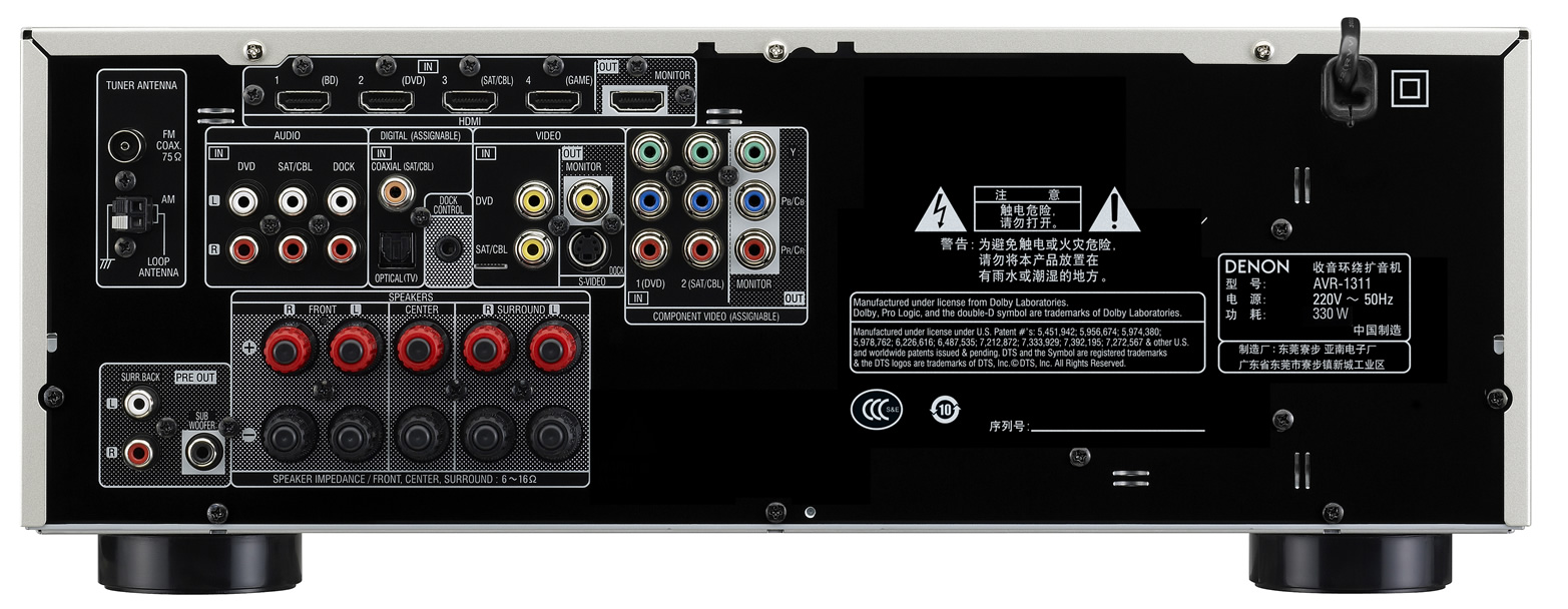 AVR-1311提供了4个HDMI输入,能同时连接各种配备了HDMI的设备,如游戏机、HD摄影机以及蓝光光盘